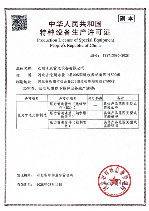 滄州澤康管道設備有限公司位于“中國管道裝備基地”——河北省鹽山縣。東臨渤海灣黃驊港,背靠京津,京滬鐵路、朔黃鐵路、京滬高速公路、石黃高速公路205 國道、283 省道均途經本地交通便利,地理位置優越。